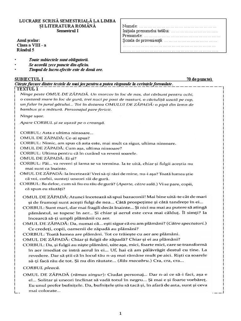 gramaticală – 1 punct; claritatea exprimării ideilor – 1 punct; respectarea normelor de ortografie – 2 puncte;