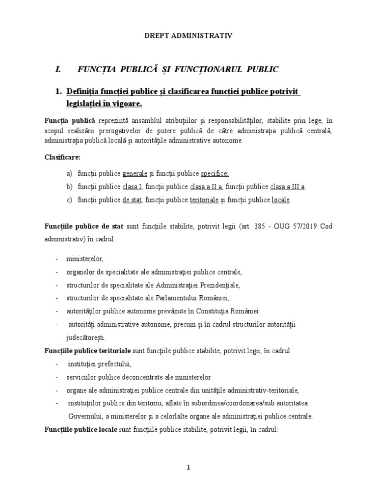 1. Definiția funcției publice și clasificarea funcției publice potrivit