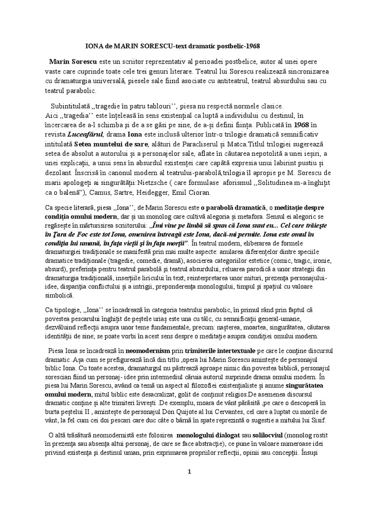 IONA de MARIN SORESCU-text dramatic postbelic-1968