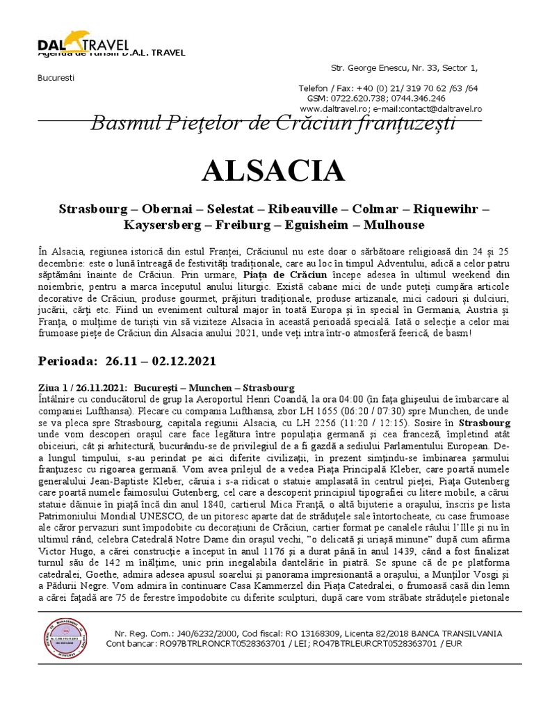 - vizitarea pieţelor de Crăciun împreună cu însoţitorul de grup în: Strasbourg, Obernai, Selestat, Ribeauville, Riquewihr,