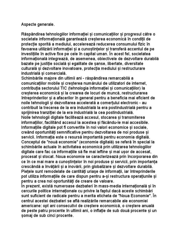 procesat și stocat. Noua economie se caracterizează prin încorporarea din
