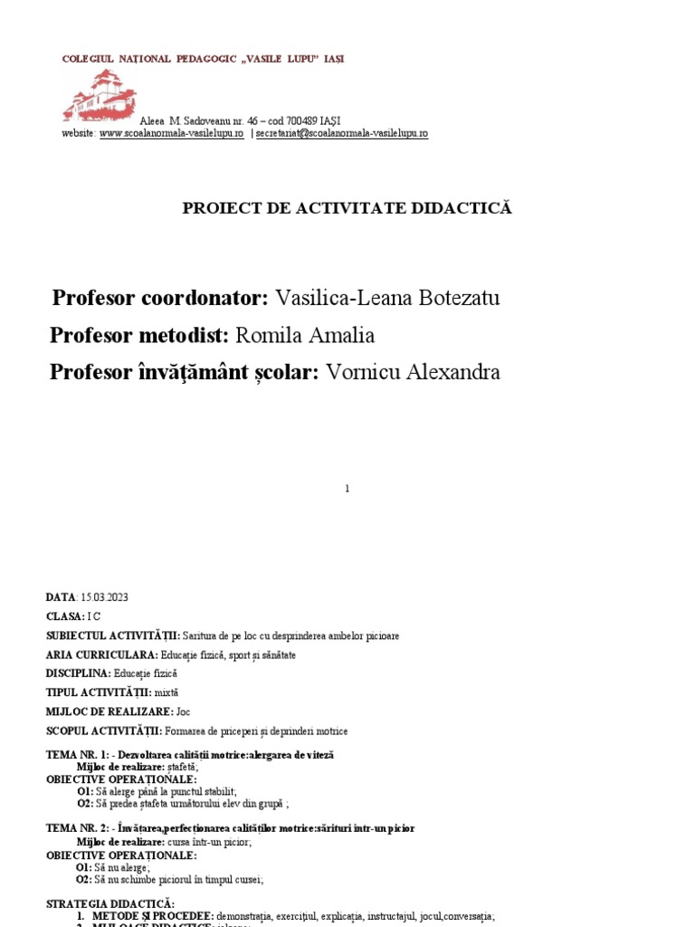 DISCIPLINA: Educație fizică