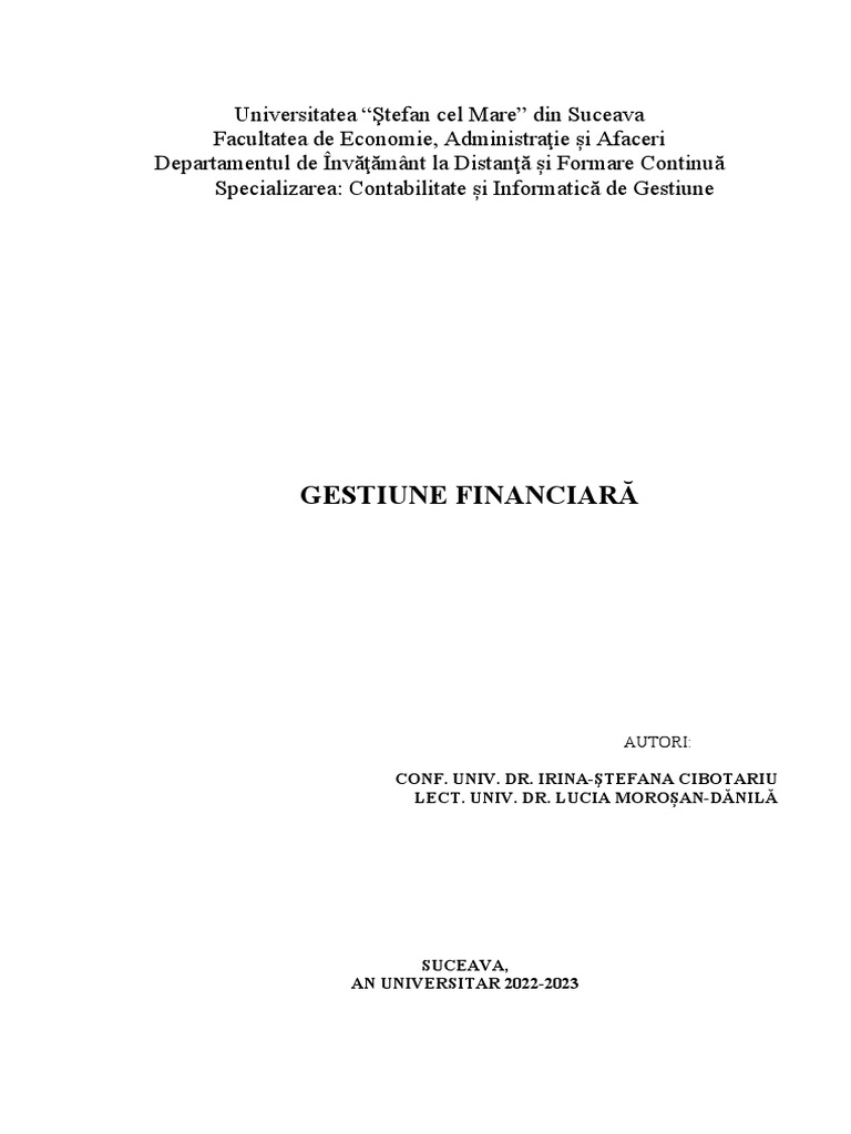 1.6. Sarcinile gestiunii financiare ........................................................................................ 10