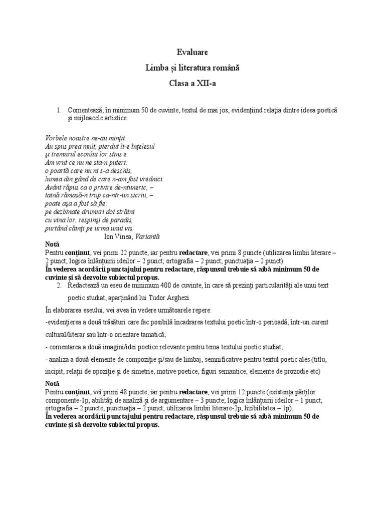 În vederea acordării punctajului pentru redactare, răspunsul trebuie să aibă minimum 50 de