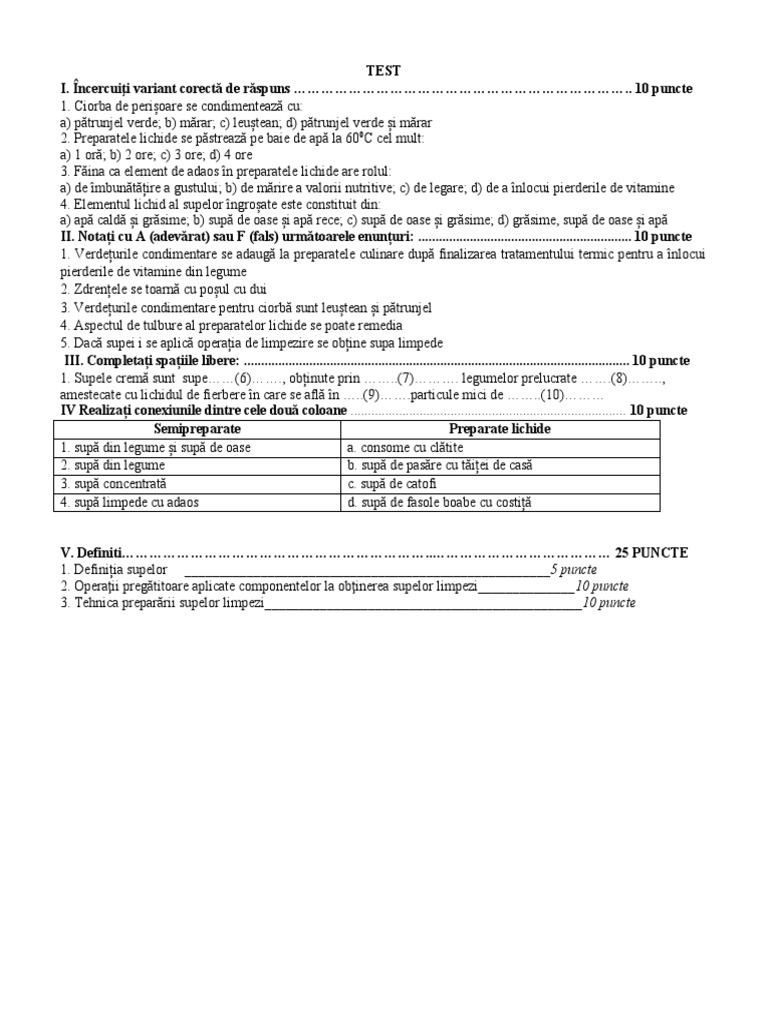 3. Tehnica preparării supelor limpezi______________________________________________10 puncte