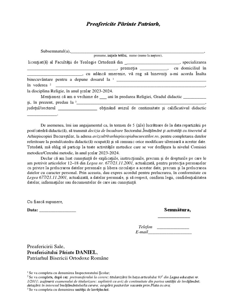 binecuvântare pentru a depune dosarul la 1 _______________________________________