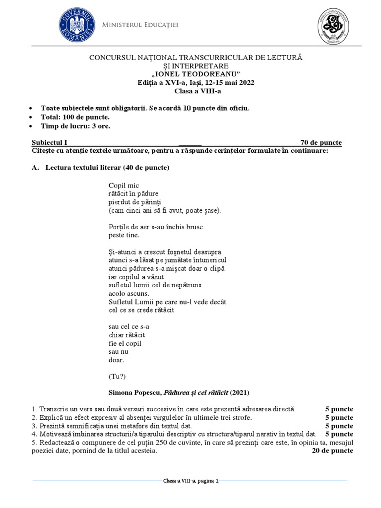 Citeşte cu atenţie textele următoare, pentru a răspunde cerinţelor formulate în continuare: