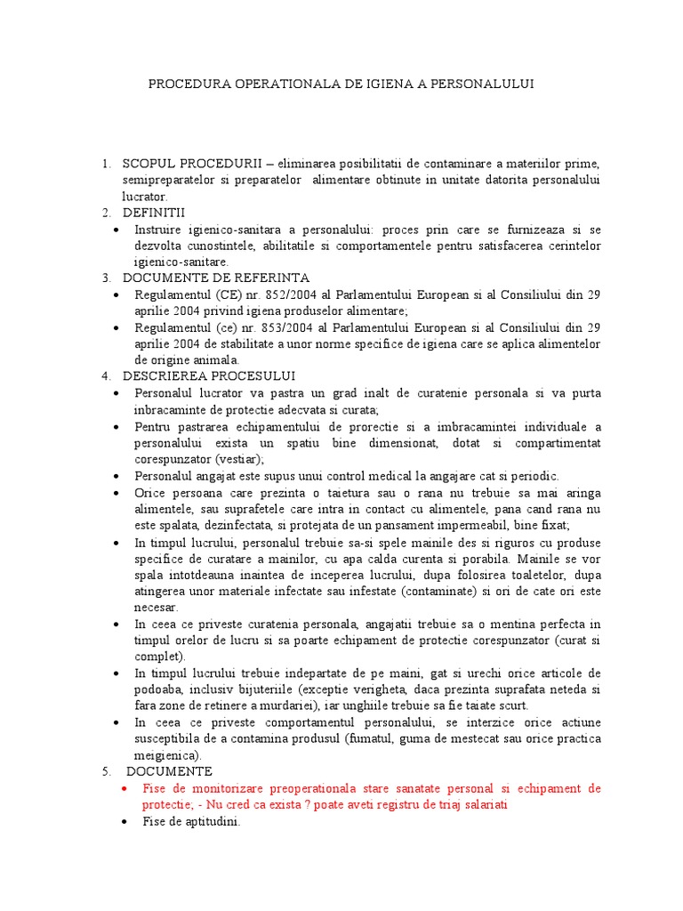 PROCEDURA OPERATIONALA DE IGIENA A PERSONALULUI