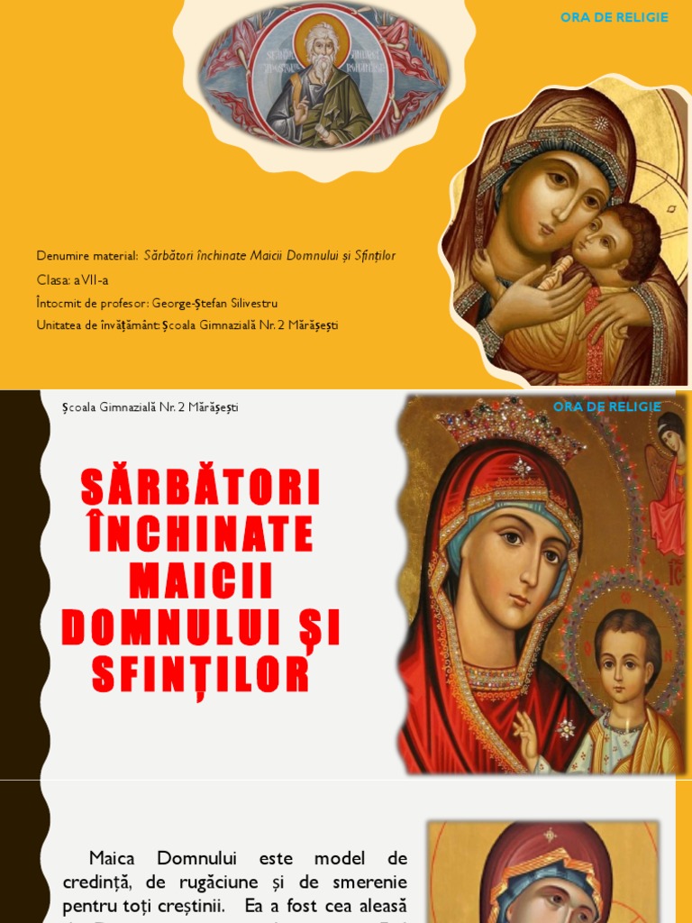 Denumire material: Sărbători închinate Maicii Domnului și Sfinților