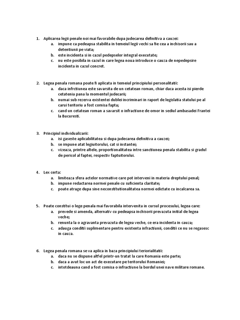6. Legea penala romana se va aplica in baza principiului teriorialitatii: