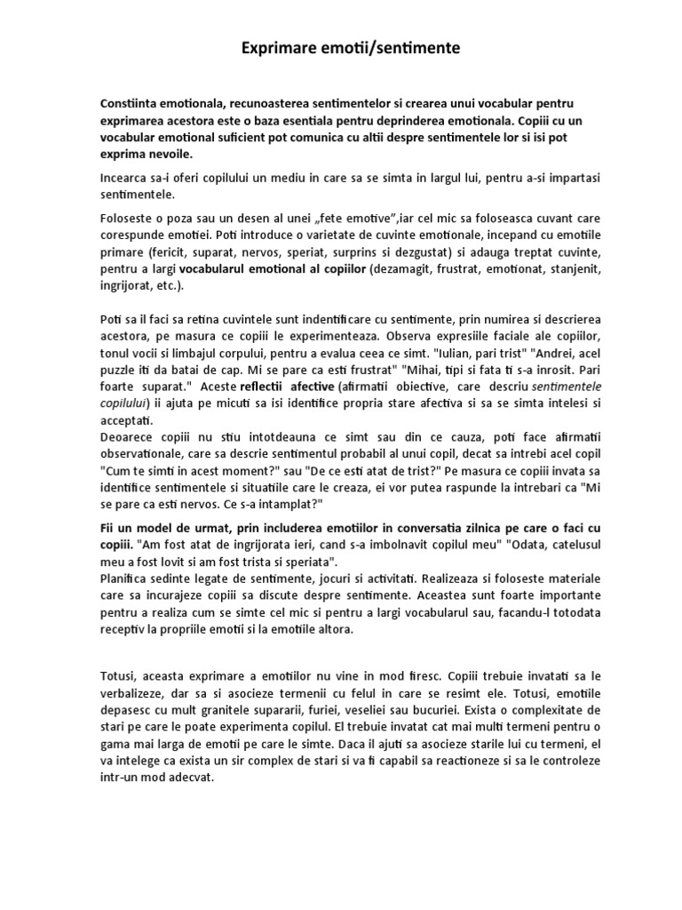 Exprimare emotii/sentimente