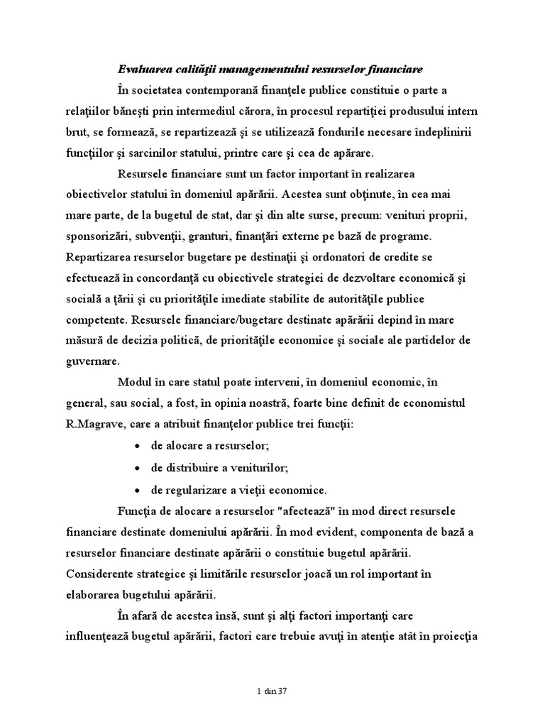 Evaluarea Calităţii Managementului Resurselor Financiare