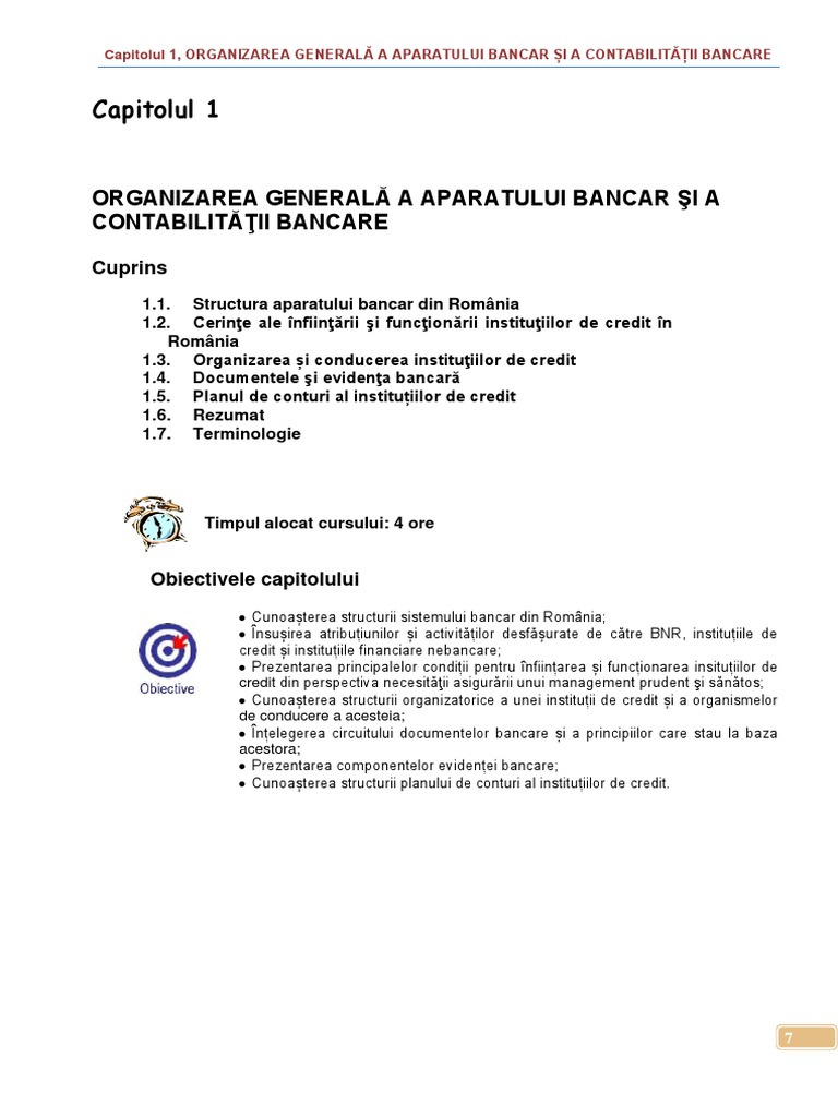 • Cunoașterea structurii planului de conturi al instituțiilor de credit.