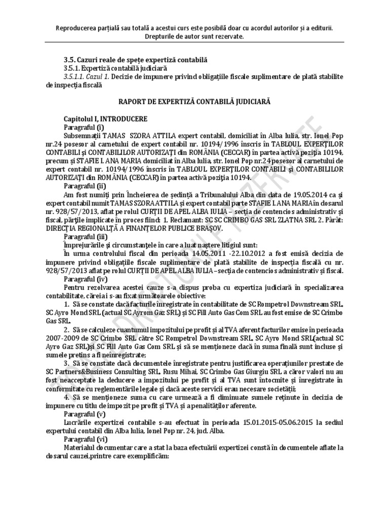- Raportul de inspecție fiscală nr. F AB 339/22.10.2012;