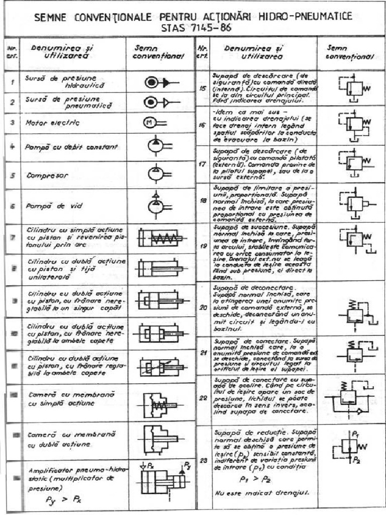 SEMNE CONVENTIONALE PENTRU ACTIONARI HIDRO-PNEUMATICE