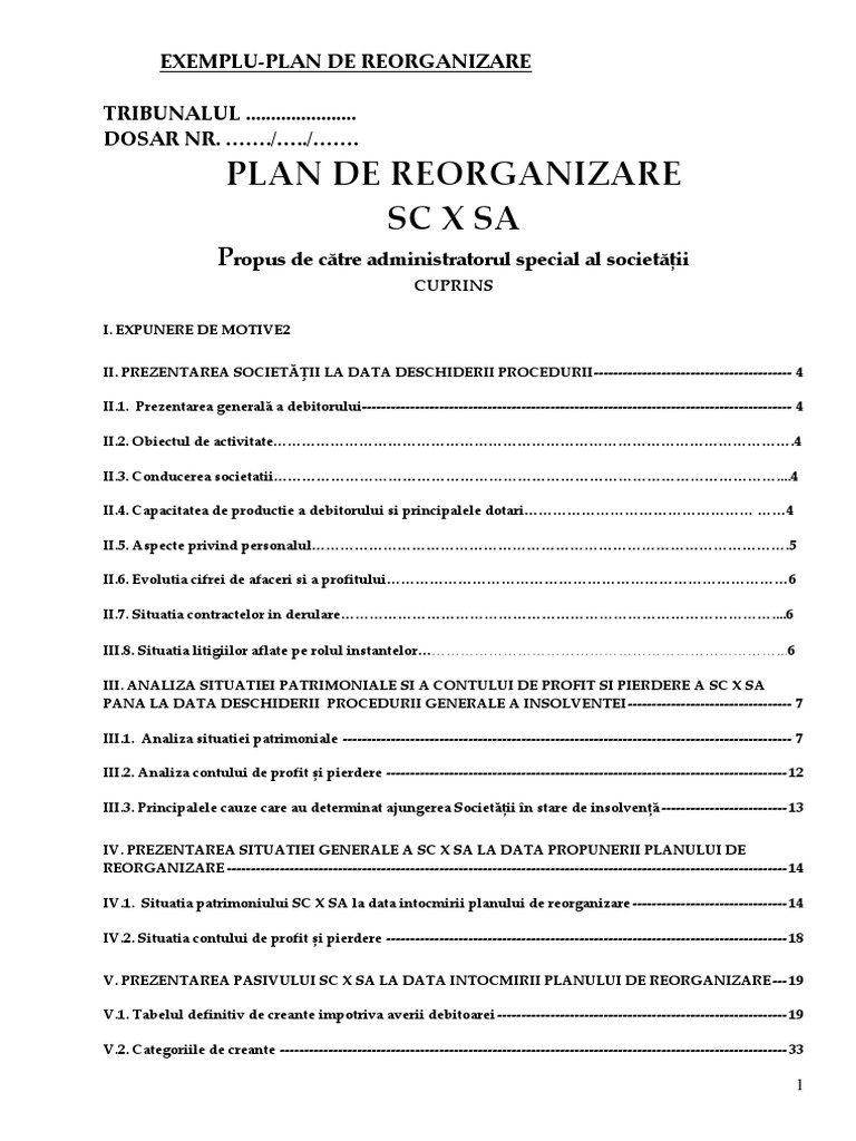 - Intenția de intocmire si depunere a Planului de reorganizare a activității Societății