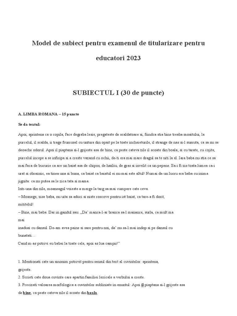 Subiecte Titularizare Educator