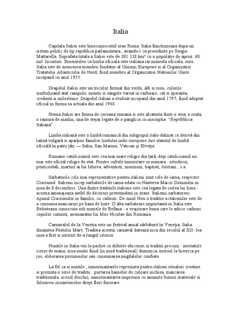 Capitala Italiei este binecunoscutul oras Roma. Italia functioneaza dupa un