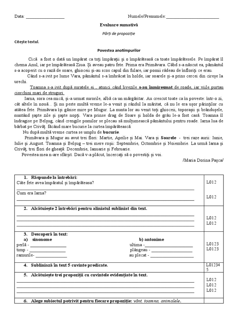 Data: ________________ Numele/Prenumele:______________________