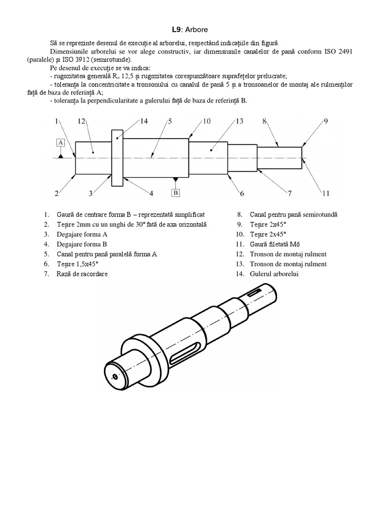 5. Canal pentru pană paralelă forma A 12. Tronson de montaj rulment