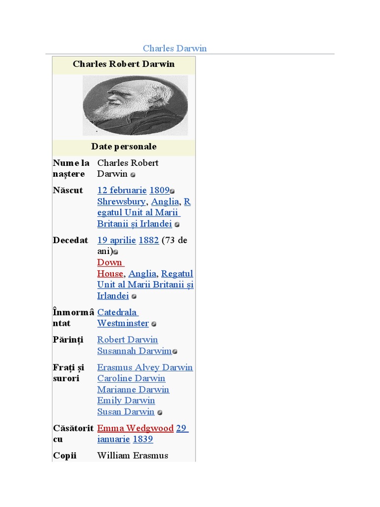 Naturalistul englez, autorul "Originea speciilor" în care dezvăluie și