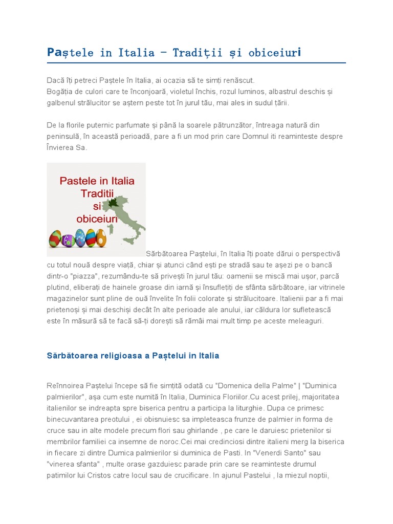 Paștele in Italia - Tradiții și obiceiuri