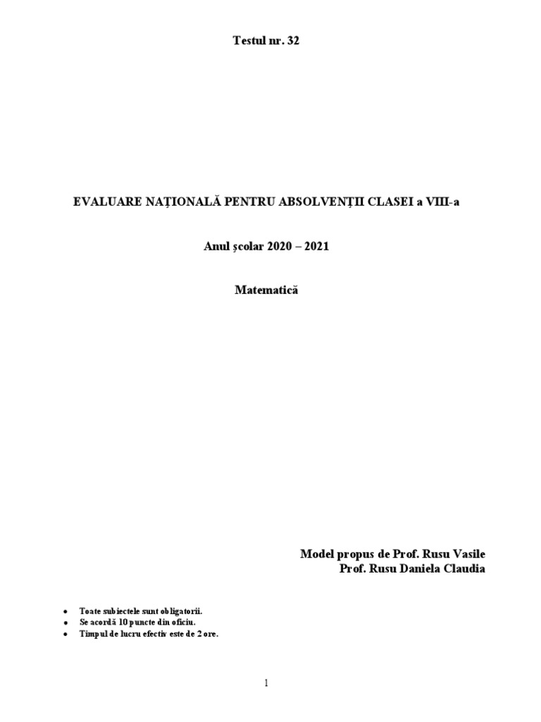 EVALUARE NAŢIONALĂ PENTRU ABSOLVENŢII CLASEI a VIII-a