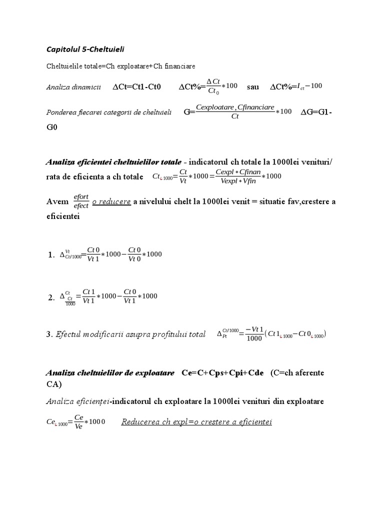 Ce¿ 1000= ∗100 0 Reducerea ch expl=o crestere a eficientei