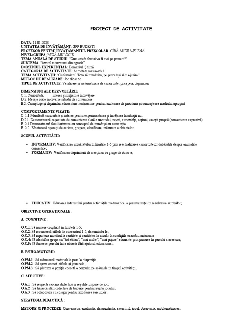 PROIECT DE ACTIVITATE