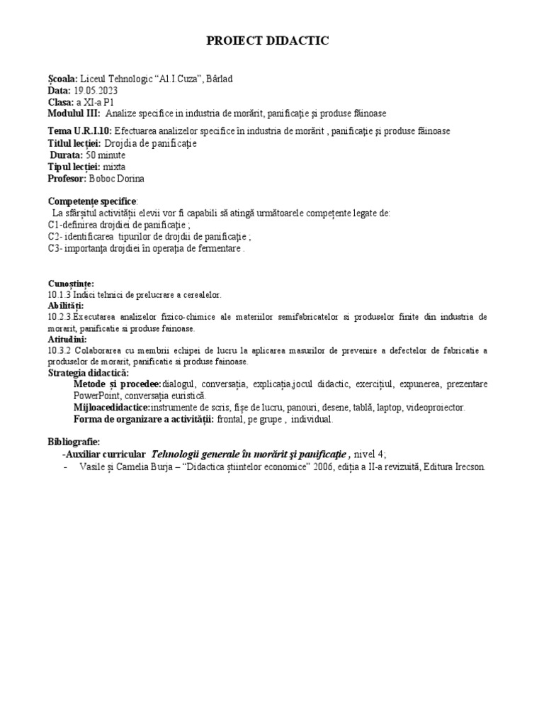 -Auxiliar curricular Tehnologii generale în morărit şi panificaţie , nivel 4;