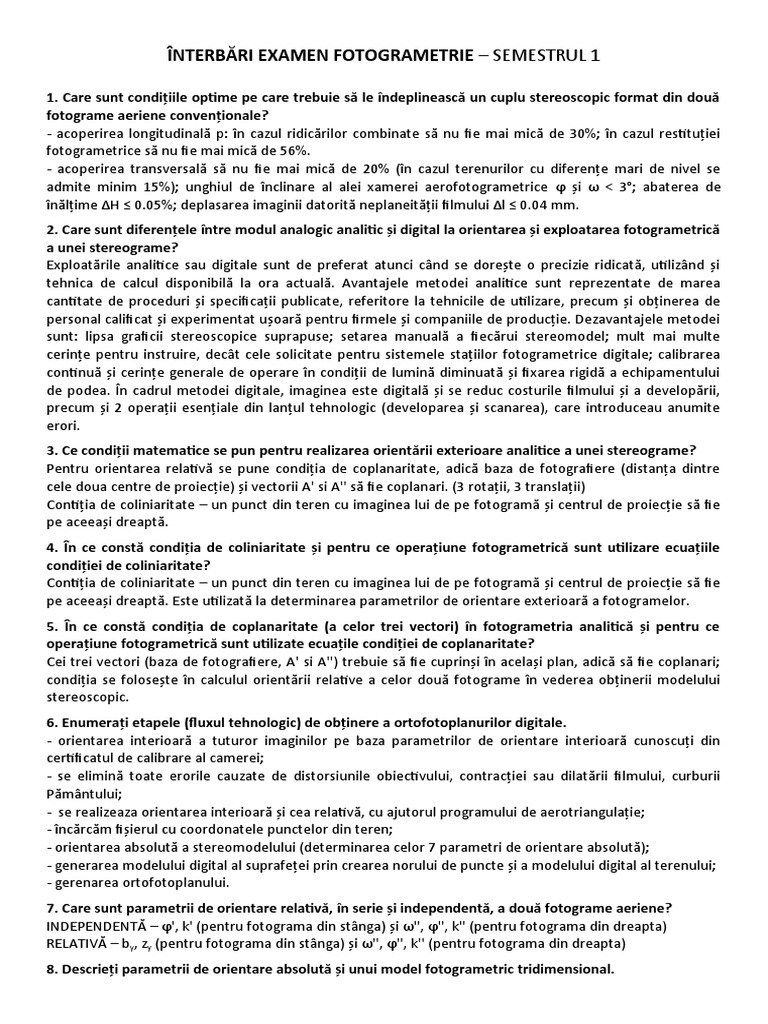 ÎNTERBĂRI EXAMEN FOTOGRAMETRIE – SEMESTRUL 1