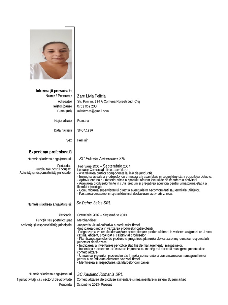 Funcţia sau postul ocupat: Lucrator Comercial –linie asamblare