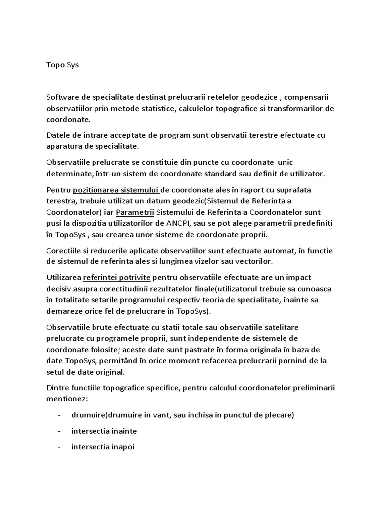 Dintre operatiile ce pot fi efectuate cu Topo Sys mentionez: