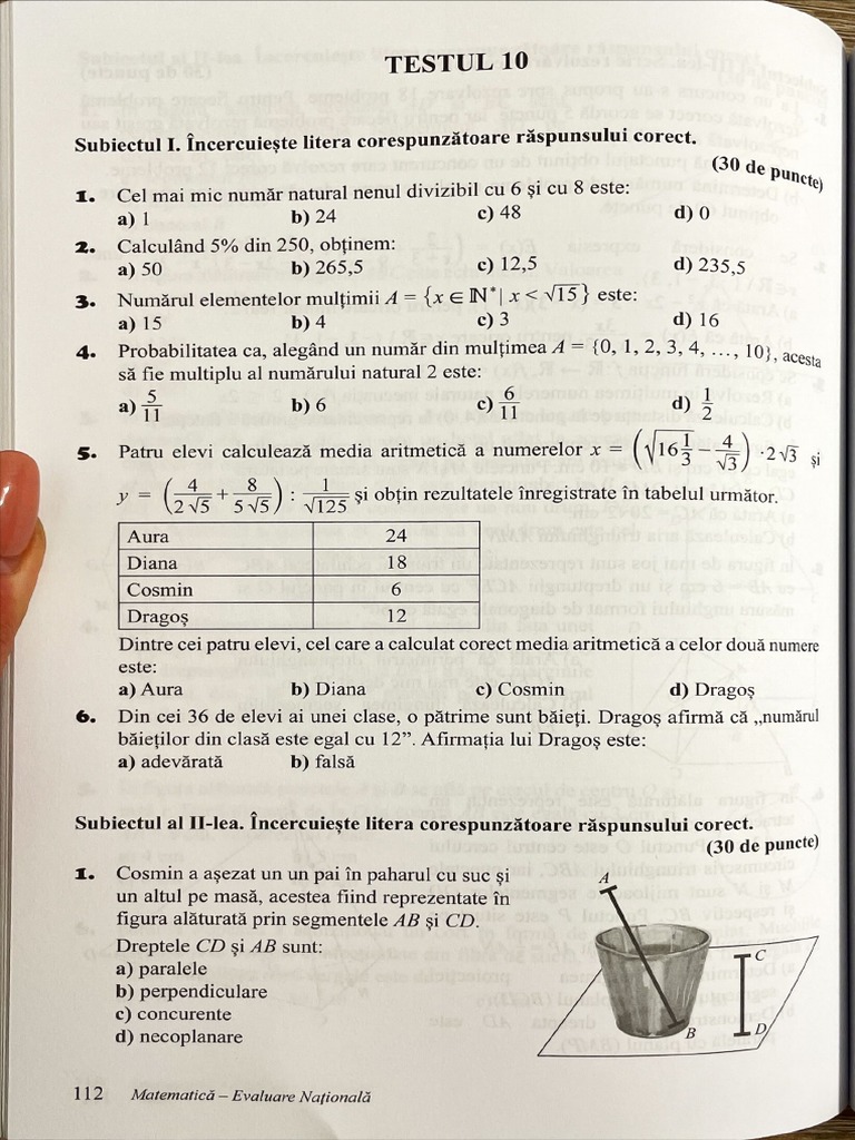 ubiectul I. incercuieste litera corespunzatoare rispunsului corect.