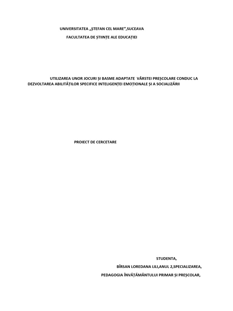 EMOȚIONALĂ PRIN JOC ȘI BASME REALIZAT ASUPRA EȘ[Link] ESTE