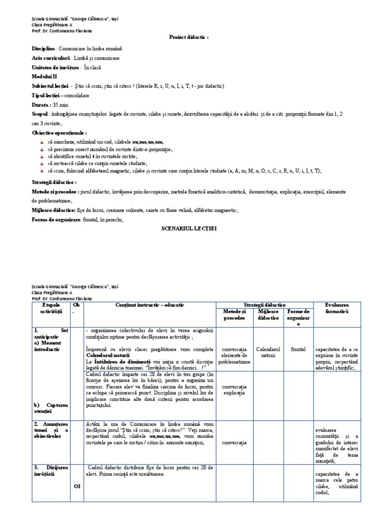 Proiect didactic :