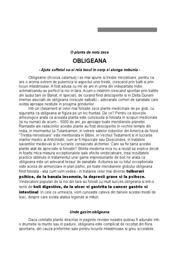obligeana este un adevarat tezaur de sanatate. Actiunea sa cu totul exceptionala