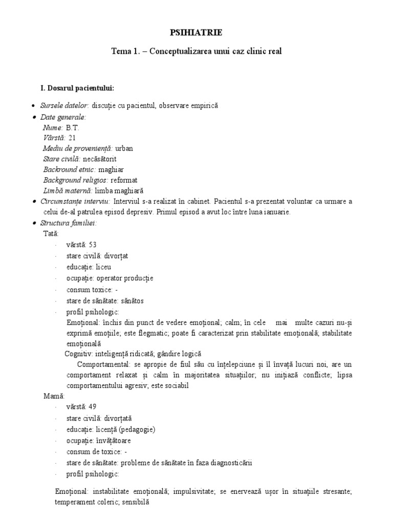 1. Istoric psihiatric: nu există consulturi sau spitalizări