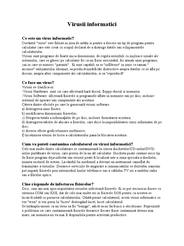 copia. Cea dea doua parte decide ce stricãciune sa facã virusul pe disc. Exista oameni care au