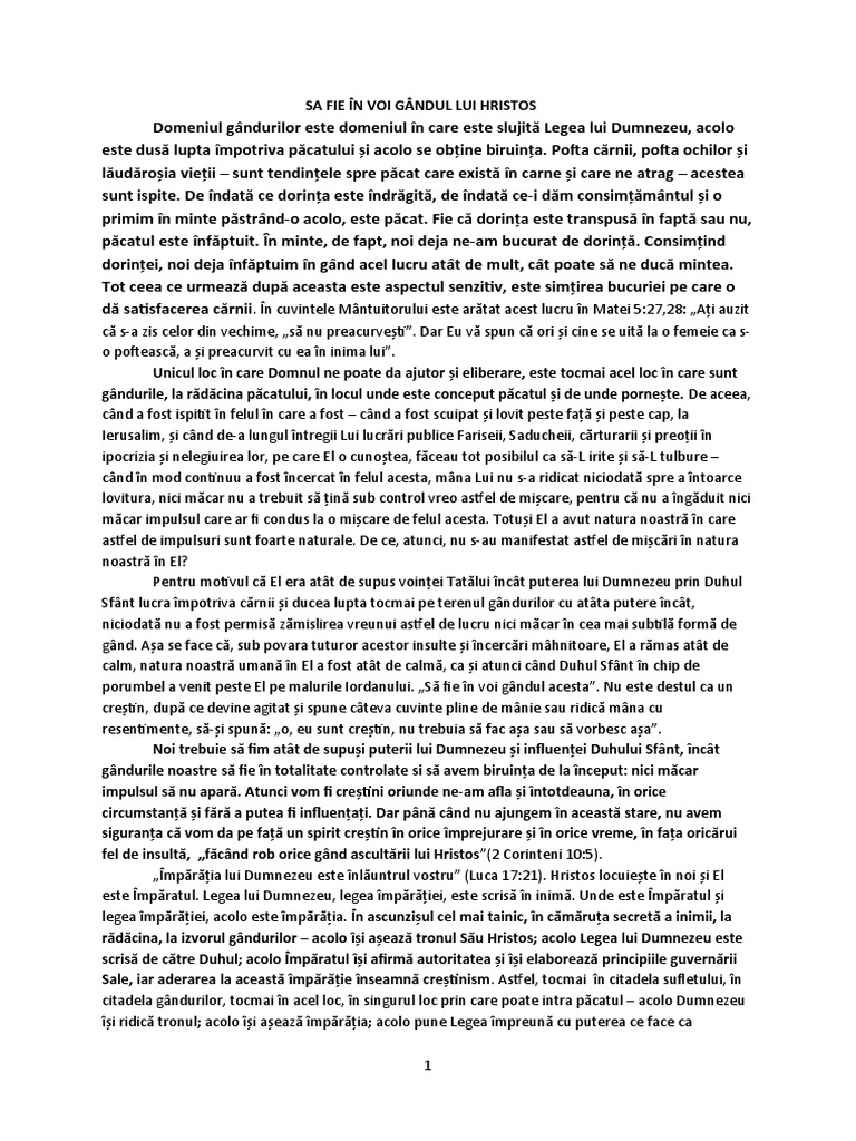 SA FIE ÎN VOI GÂNDUL LUI HRISTOS