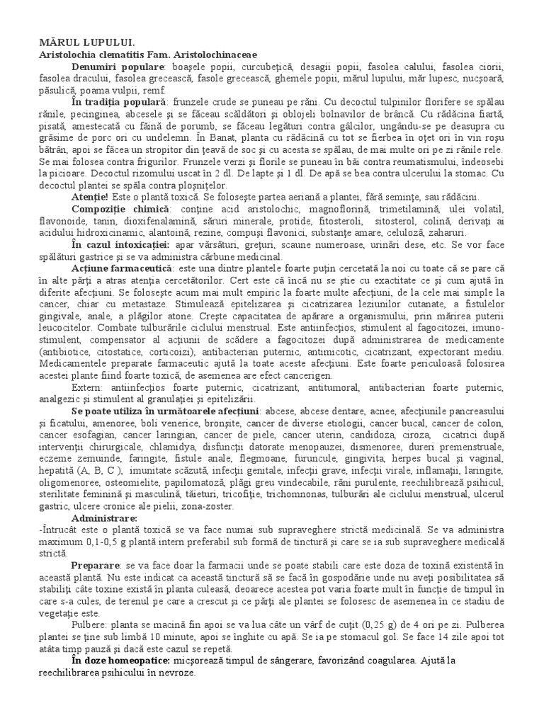 maximum 0,1-0,5 g plantă intern preferabil sub formă de tinctură şi care se ia sub supraveghere medicală