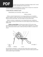 la refulare. Se numesc volumice pentru c parametrul esenial n transferul energetic este volumul de fluid preluat n spaiul mobil etan. nlimea de pompare depinde foarte puin de debit, doar n msura compresibilitii fluidului i a gradului de etanare a volumelor transportate. n aceast categorie intr toate pompele din sistemele de acionare i automatizare hidropneumatic. Ele fac parte integrant din domeniul respectiv i ca urmare nu vor fi tratate n cele ce urmeaz. Pe lng acestea mai sunt maini volumice utilizate n vehicularea de fluide n scop de transport, din care se exemplific urmtoarele: a)pompe cu piston b)pompe cu membran c)pompe cu roi profilate d)pompe cu rotor excentric i palete elastice e)pompe cu inel elastic f)pompe peristaltice Maini cu fluid motor. La aceast categorie de maini fluidul pompat primete energia de la acelai fluid sau altul cu nivel energetic cinetic (energia cinetic, de micare) ) ridicat. Schimbul energetic se face ntr-o camer de amestec, pe o parte a traseului de pompare sau prin modificarea energiei interne, transformri de faz, etc. La aceste maini majoritatea elementelor mecanice sunt fixe, iar dac sunt unele mobile au rol de limitare a micrii fluidului doar ntr-o direcie. Cele mai importante sunt: a)ejectoare b)pompe cu amestec de lichid-gaz c)berbecul hidraulic d)pompa cu condensare de abur Maini electromagnetice. Aceste maini funcioneaz cu fluide cu proprieti electromagnetice (care sunt influenate de cmpul electromagnetic) sau electric conductoare. Astfel n fluidele electromagnetice sau conductoare electric dac se produc cmpuri electromagnetice variabile sau cureni variabili vor aprea fore electromagnetice cu efect de pompare asupra fluidelor respective. n aceast categorie se poate meniona pompa din figur Elevatoare hidraulice. Unele sunt printre cele mai vechi tipuri de maini hidraulice. Funcioneaz pe principiul mainilor volumice fr a ridica presiunea lichidului vehiculat, ci doar ridicarea lui de la nivelul bazinului de aspiraie la nivelul canalului colector deschis (de refulare). Cantitatea de lichid transportat depinde de volumul elementelor transportoare i de viteza lor de micare dat de mecanismul sistemului de antrenare. ntre acestea pot fi menionate cinci tipuri semnificative: a)elevatoare cu cupe b)elevatoare cu palete spirale c)elevatoare cu pistoane pe lan d)elevatoare prin aderen e)elevatoare cu urub (Arhimede) [Link] centrifuge cu rotor nchis. n fig. 3.1. este reprezentat schema unei pompe centrifuge monoetajate. Rotorul 1, calat pe arbore, este organul principal. El servete la ridicarea presiunii lichidului care trece prin pomp. Lichidul intr prin racordul de aspi-raie 2, este accelerat de paletele rotorului 6, trece prin paletele 7 ale dispozitivului conducere 3, n care se transform o parte din energia cinetic n potenial, este colectat n carcasa spiral 4 i trece prin difuzorul 5 spre racordul de refulare. In carcasa spiral i mai ales n difuzor se obine o nou scdere a vitezei lichidului prin creterea treptat a seciunii de trecere. Dispozitivul de conducere poate fi format dintr-un stator cu palete fixe, dintr-un spaiu inelar fr palete. n ambele cazuri fluidul refulat de rotor e colectat ntr-un spaiu (spiral) cu seciune uniform cresctoare astfel nct viteza medie s fie relative constant. Sunt cazuri cnd din motive de simplificare constructiv sau funcionale colectorul e inelar. Lichidul intr n rotor, n general, fr dispozitiv de conducere. Ra-reori se utilizeaz un paletaj statoric de conducere la intrare.