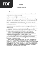 rostogolirea pe furtun a celei de a doua role, procesul se repet, asigurnd astfel o refulare continu a betonului n conducta de transport (3). Dintre dezavantaje se menioneaz acela c furtunul de pompare este de construcie special, armat cu mas plastic i oel i uzura lui este n funcie de presiunea de lucru i de calitatea betonului. Pentru a mri durata de via a furtunului de pompare, cu aceste grupuri se pompeaz beton la distane mai mici. Berbecul hidraulic Berbecul hidraulic este o pomp cu fluid motor. Ea nu are nici o pies n rotaie i lucreaz efectiv prin dou valve. Berbecul hidraulic a fost inventat n 1793 de ctre fraii Montgolfier g n Frana. Ilustraia de aici nu este utilizat la proiectare astzi, dar principiile sunt aceleai, (fig. 3.34). Iniial, supapa de descrcare (4) este deschis, cu supap de refulare (5) este nchis. Apa din conducta de aduciune (1) ncepe s curg gravitaional. Cnd viteza apei din vecintatea supapei de descrcare (4) atinge o valoare astfel nct presiunea dinamic pe suprafaa frontal a ventilului (4) determin o for suficient de mare astfel nct nvinge greutatea proprie (sau eventual a arcului care o ine deschis), aceasta se nchide brusc. n acel moment coloana de lichid din amonte de ventil fiind n micare se produce fenomenul de lovitur de berbec, care se manifest n primul moment sub forma unei unde de suprapresiune n conduct. Aceast cretere a presiunii n conduc determin deschiderea ventilului clapet (5) i att timp ct presiunea undei persist i este mai mare dect presiunea din conducta de refulare (3), o parte din ap trece prin aceast supap i este astfel pompat n reeaua de consum. n momentul cnd unda de suprapresiune s-a atenuat supapa (5) se nchide (presiunea din amonte de ea fiind mai mic), iar ventilul (4) se deschide de asemenea. n acest moment un ciclu de funcionare s-a ncheiat i ncepe un alt ciclu identic. Deoarece pulsaiile de presiune datorit loviturii de berbec se transmit n ntregul sistem de pompare cu aceeai intensitate i deranjeaz prin zgomotul i vibraiile produse, se introduce un element de atenuare ce const ntr-un mic recipient (6) cu pern de aer deasupra. Acest aer este sub presiune i este treptat dizolvat n ap pn cnd nu mai rmne deloc. O soluie la aceast problem este de a avea aerul separat de ap de ctre o diafragm elastic (similar cu ce este la un vas de expansiune). Turbopompele sunt turbogeneratoare hidraulice n care transferul energetic se realizeaz prin intermediul unui organ rotitor numit rotor, prevzut cu o reea de palete care interacionnd cu lichidul de lucru, determin transferul energetic prin modificarea momentului cantitii de micare. n aceast categorie intr pompele centrifuge n diverse variante de rotor, pompele cu canal lateral i periferial, pompele axiale. Ventilatoarele sunt turbogeneratoare pneumatice similare turbopompelor, numai c acestea lucreaz cu gaze, cel mai adesea cu aer. n aceast categorie intr ventilatoarele centrifuge, axiale i cu curent transversal. Deoarece cele dou categorii de turbomaini funcioneaz dup aceleai principii, fie c este vorba de mediu lichid sau gazos la un nivel de compresie neglijabil, n cele ce urmeaz se va utiliza cel mai adesea apelaia de pomp, valabil pentru toate categoriile din context. Elementele componente principale ale turbogeneratoarelor hidropneumatice Elemente ale circuitului hidraulic rotor (1) racord de aspiraie (2) racord de refulare (3) spaiu de conducere nepaletat (dup rotor) (4) camer colectoare (spiral) (5) stator (paletaj statoric) (6) canale laterale sau periferiale (7)