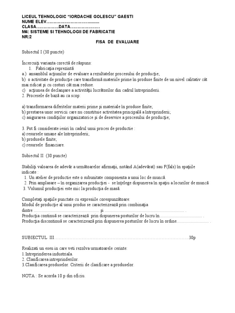 1. Un atelier de productie este o subunitate componenta a unui loc de muncă.