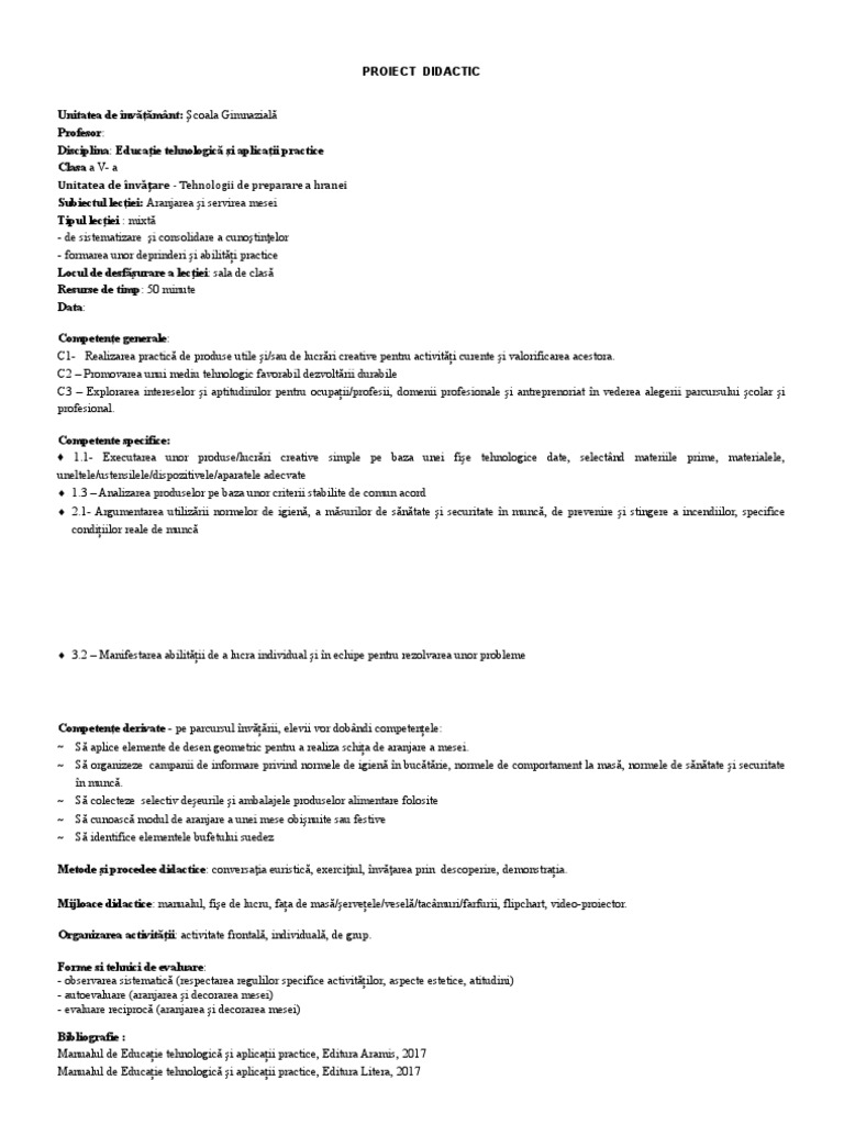 Aranjarea și servirea mesei titlul lecţiei şi fisa de lucru