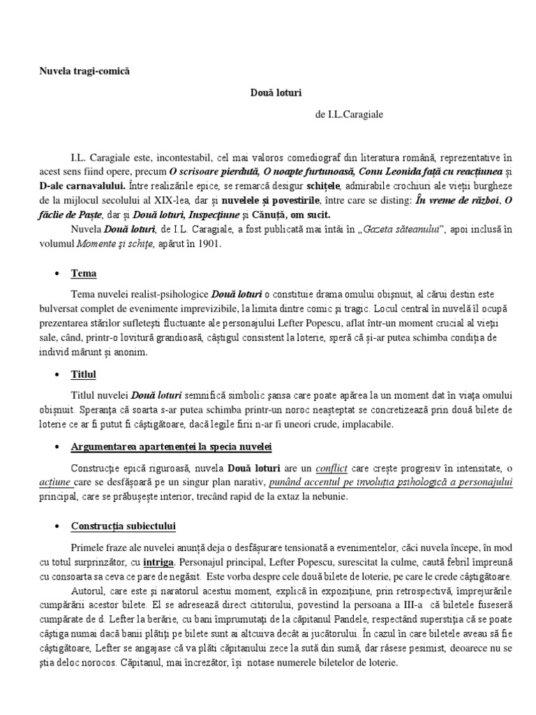 d. Lefter ar fi surd”, îi dă vestea fabuloasă : câştigaseră „loturile mari! ale mari de tot!”. Comparând listele