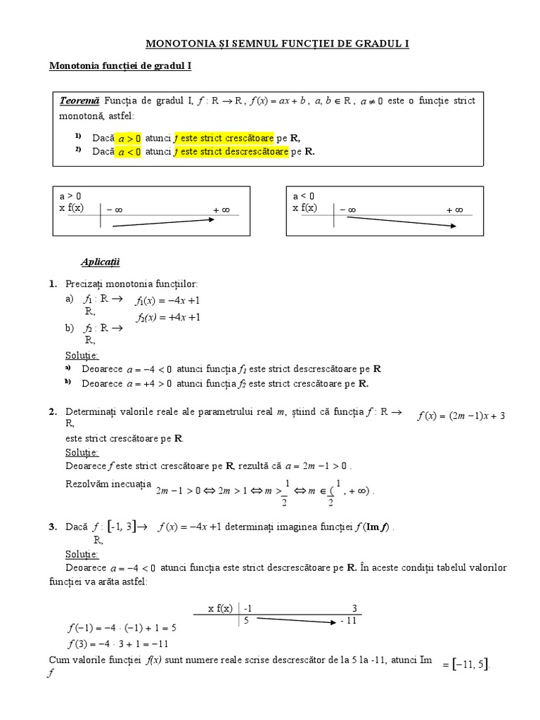 MONOTONIA ȘI SEMNUL FUNCȚIEI DE GRADUL I