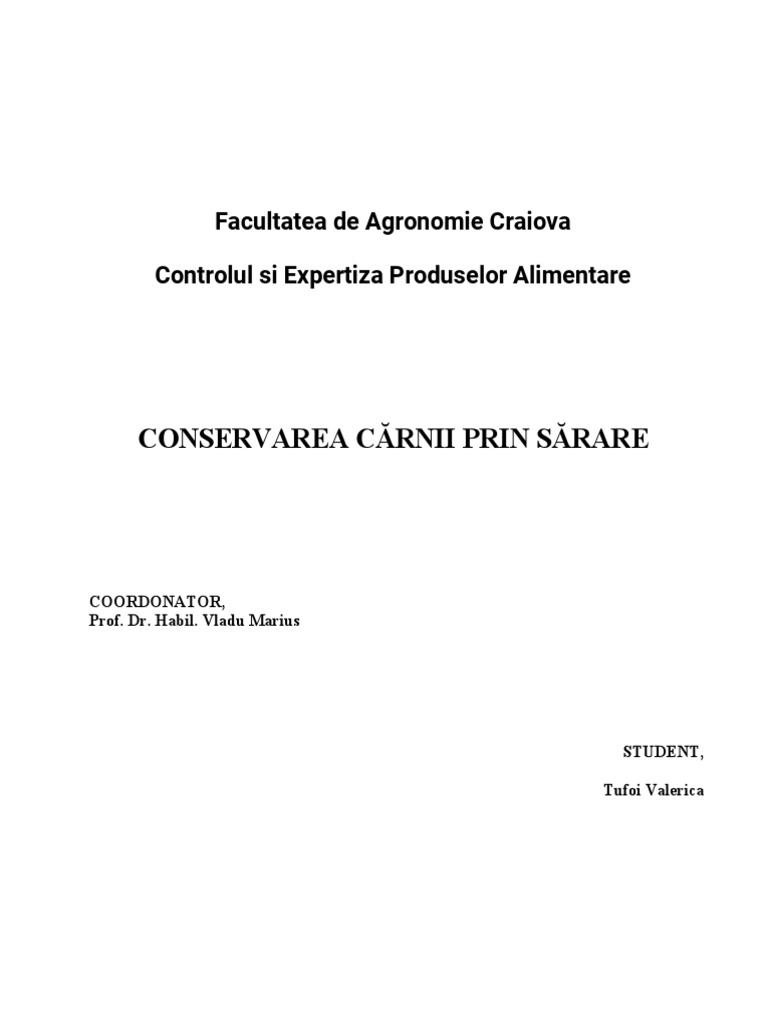 CONSERVAREA CĂRNII PRIN SĂRARE..........................................................................................................1
