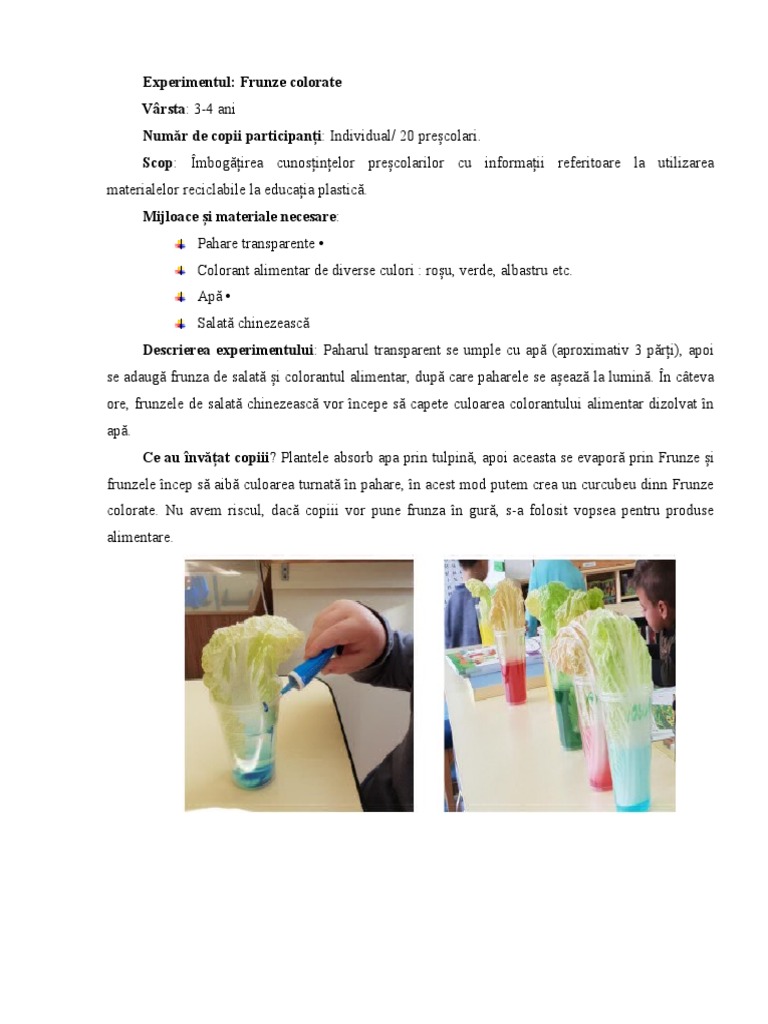 Descrierea experimentului: În săptămâna în care am vorbit despre rolul apei în viața omului.