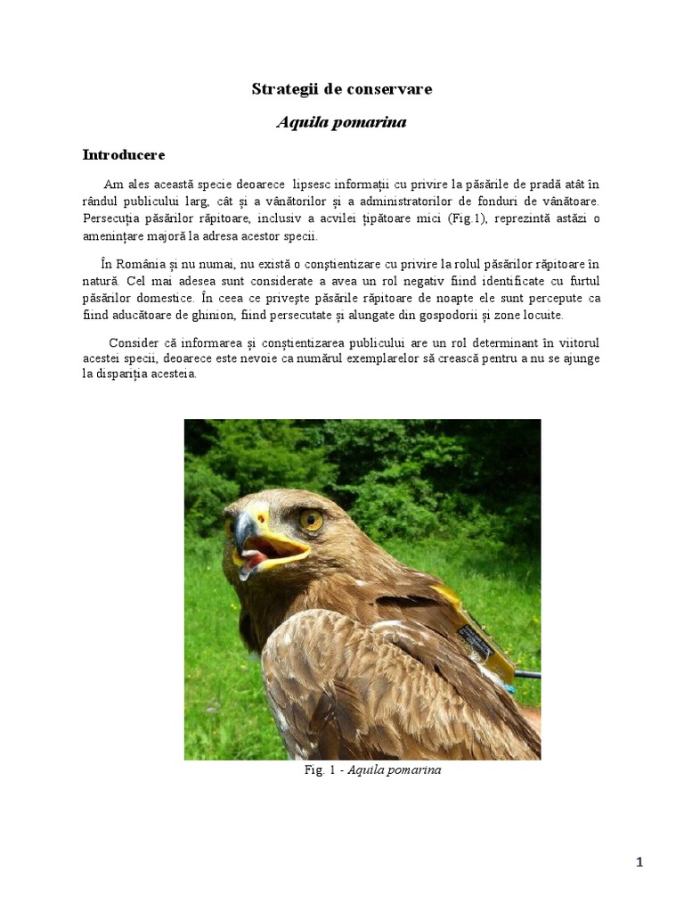 2. Planul Național de Acţiune pentru conservarea acvilei ţipătoare mici - Aquila pomarina,